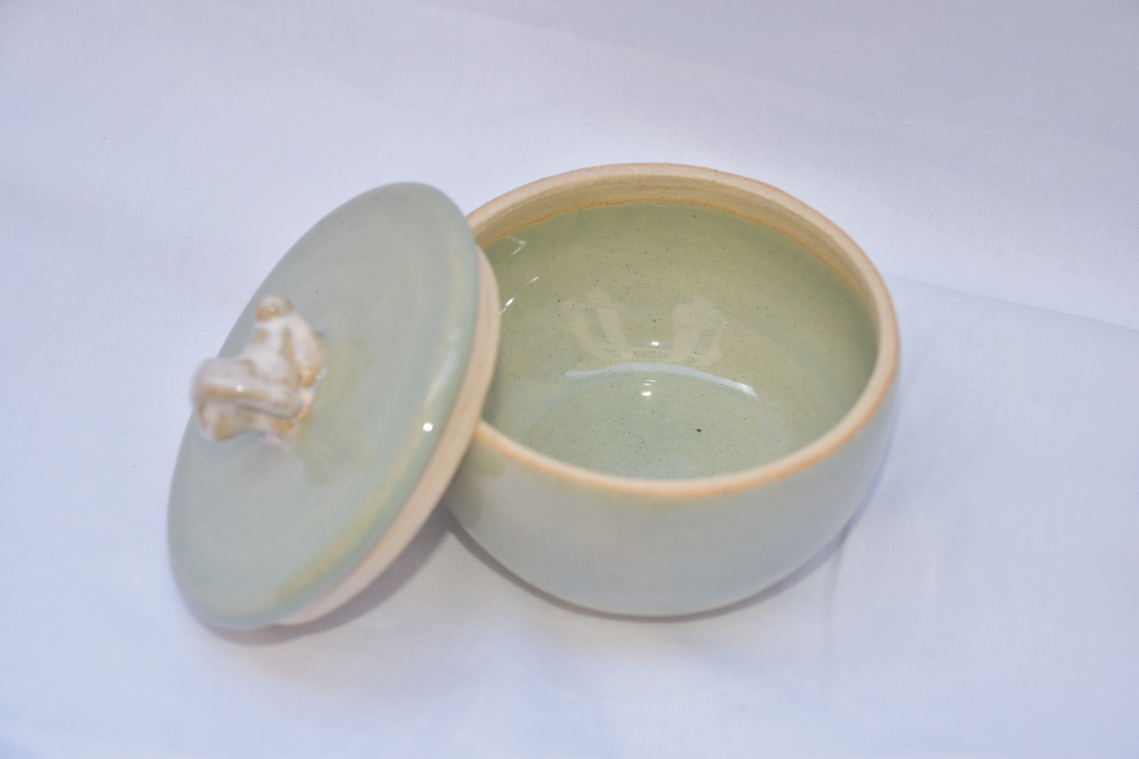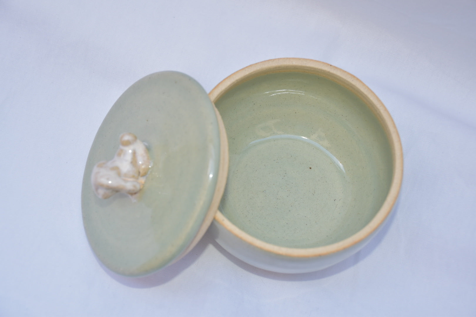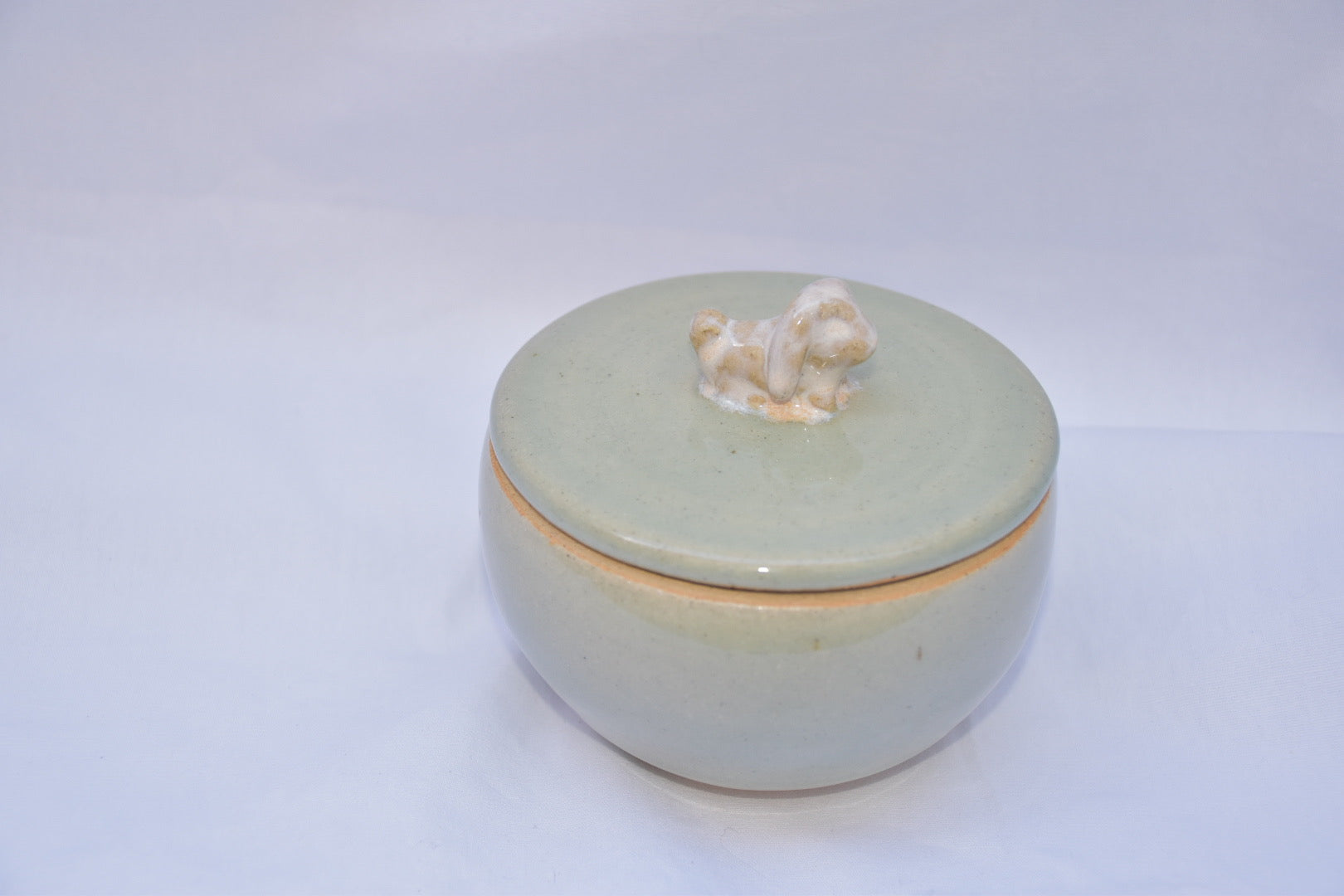 this cutie little jar has a small bunny at top. will brighten up any countertop/nightstand!