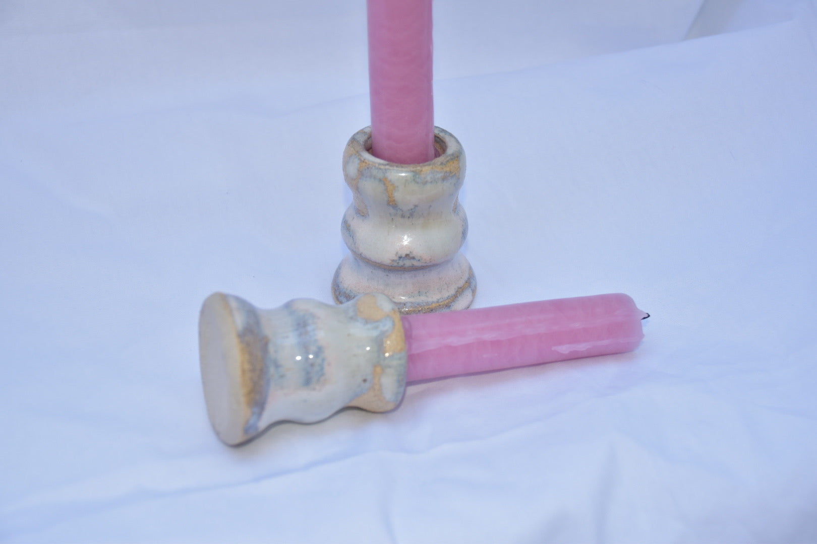 set of 2 mini candlestick holders that have a fluffy design reminiscent of summer rainclouds.