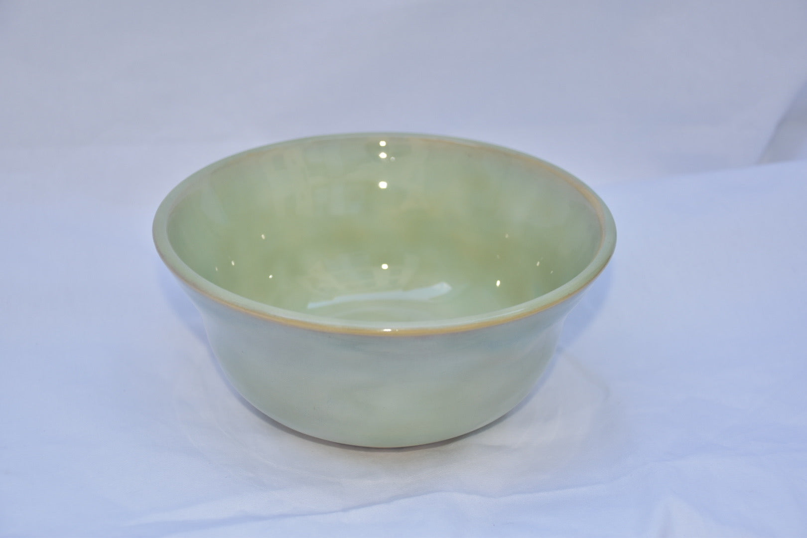 stunning green bowl that almost seems to glow from within. a wider rim allows for more food to be packed in -- yummy!