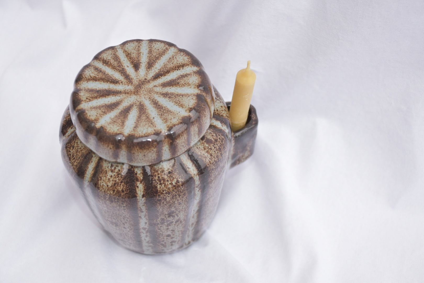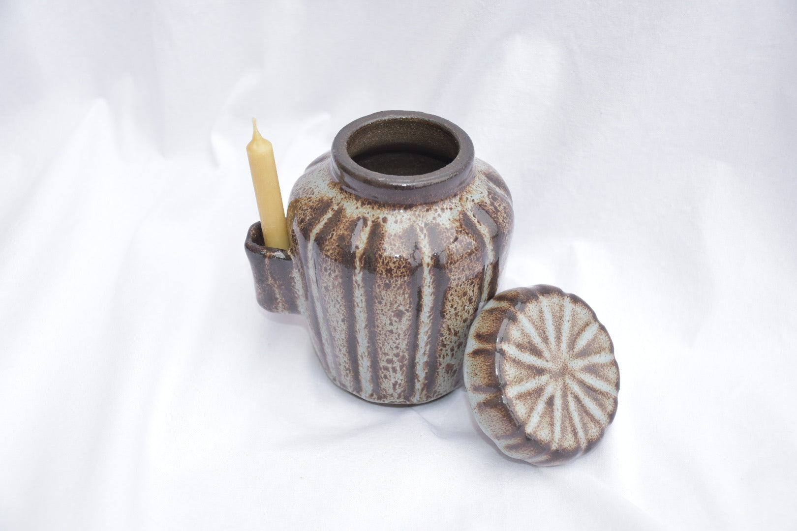 this jar will come with two 100% beeswax candles that fit perfectly into the candle pocket on the side of the jar.