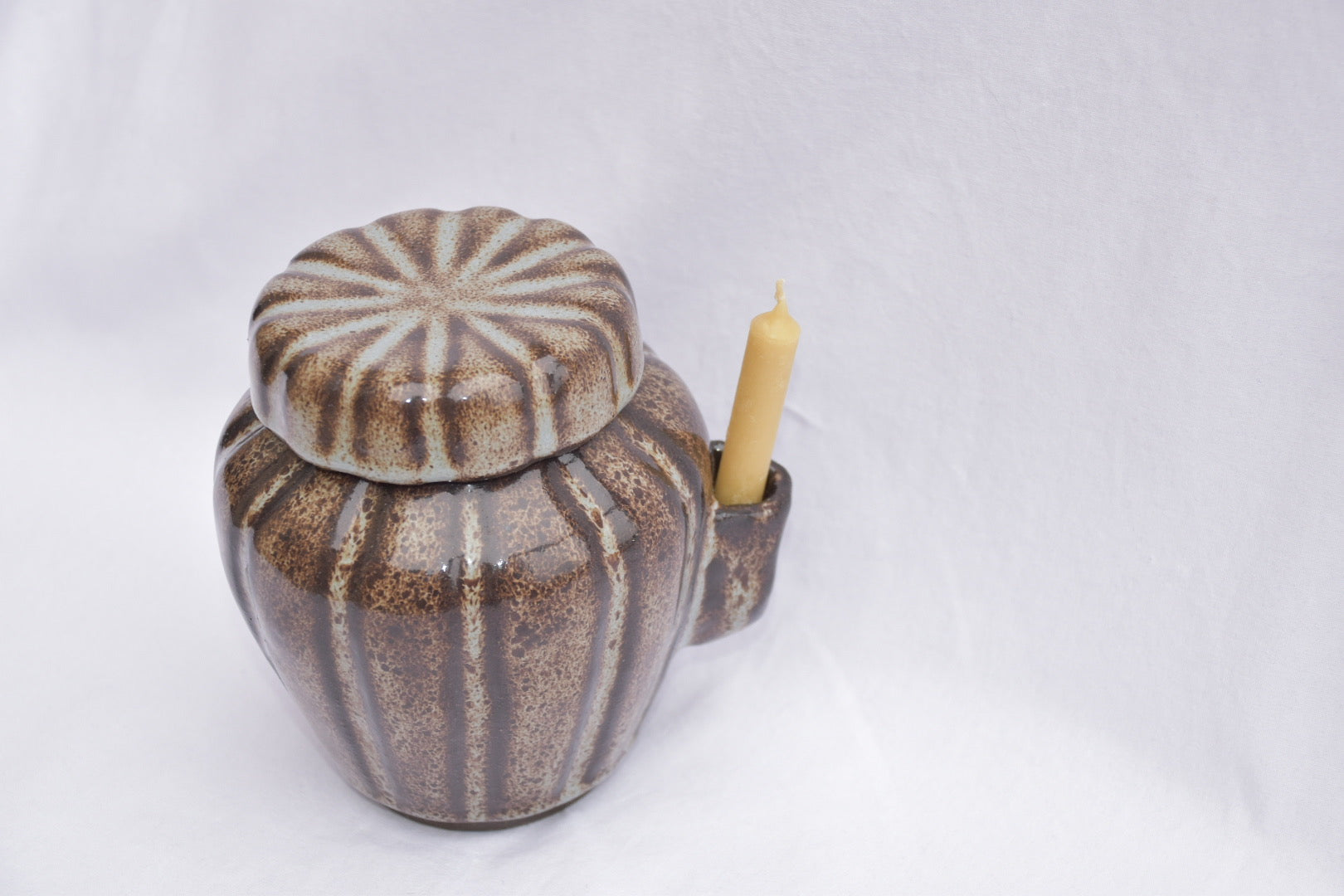 this jar will come with two 100% beeswax candles that fit perfectly into the candle pocket on the side of the jar.