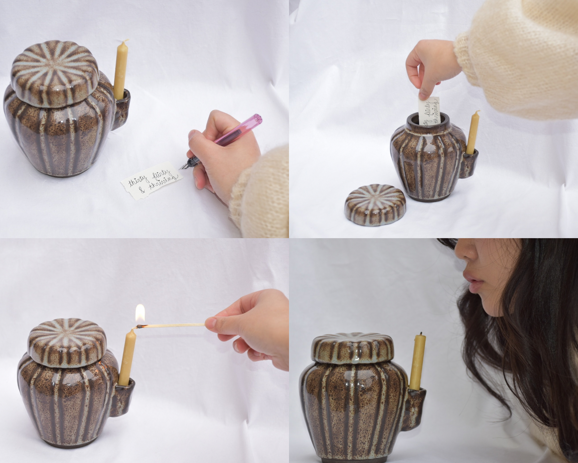 the little wishes jar is for the dreamers that want to make wishes all year round -- not just on their birthday. simply write down your wish on a piece of paper, place it into the jar, light a candle, and blow it out. when the jar is full, you will be able to empty the jar to read all the wishes you've made so far & see which of them have come true!
