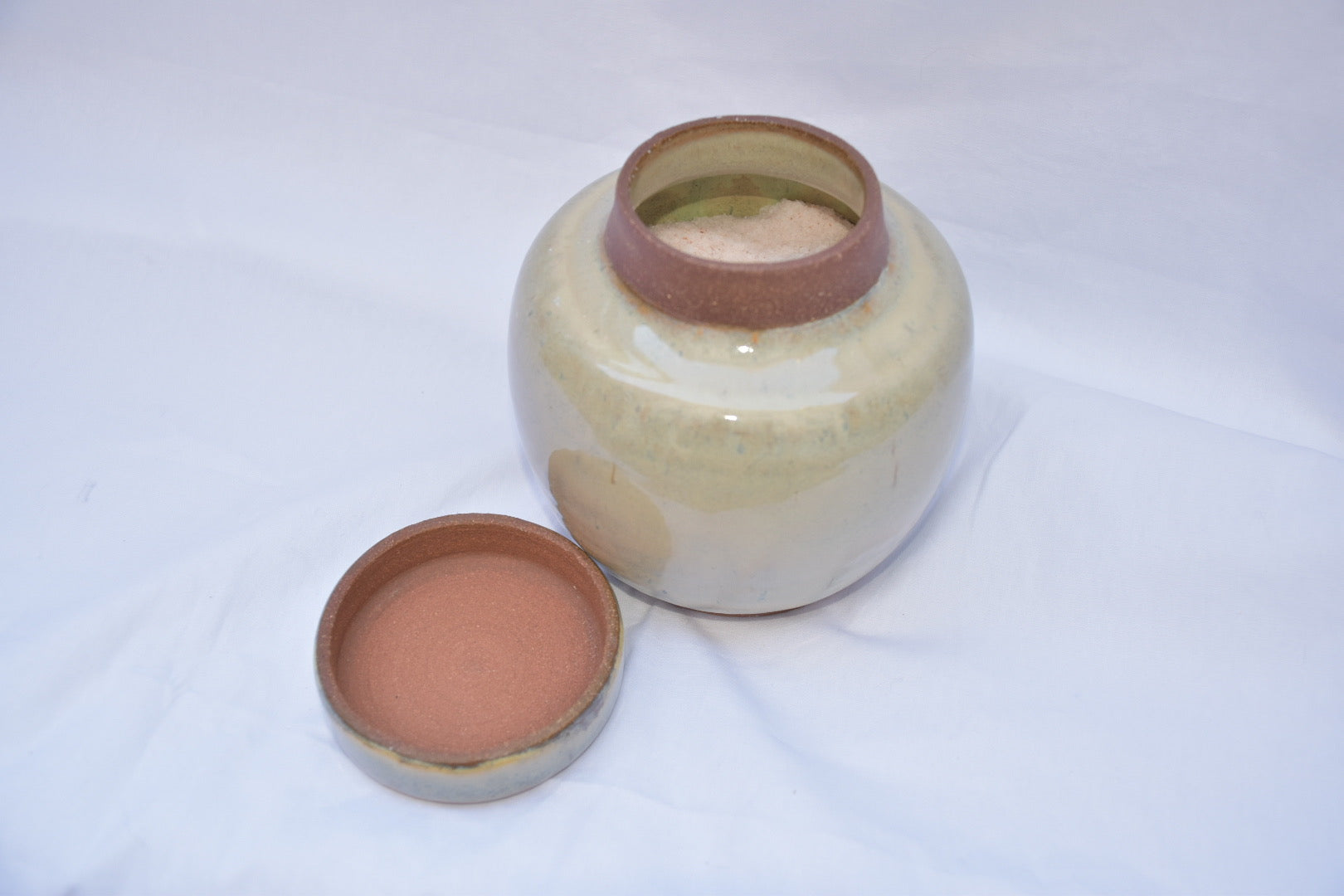 this large jar features a bowl-like lid perfect for measuring out bath salts for your next meditative bath. can also store tea, cooking salt, mints, and anything else your heart desires!